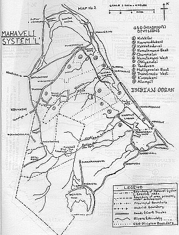 When Mahaveli System L was put into operation in April 1988, a new pattern was set. Former schemes such as Gal Oya, Allai and Kantalai did not displace existing farmers. They were at least nominally integrated into the scheme. The Gal Oya scheme, although bringing in Sinhalese colonists, benefitted many Tamil and Muslim farmers who had fields in the area. In the case of Weli Oya not only were nearly all Tamils in the project area driven out, but by 1985 Tamils in the neighbouring ancient Tamil village of Thennamaravady (Thennen-Maravady) in the Trincomalee District were also forced to desert the village.
